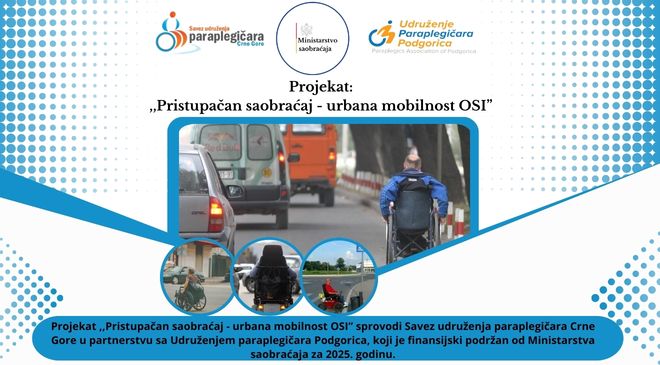 Savez udruženja paraplegičara Crne Gore, u partnerstvu sa Udruženjem paraplegičara Podgorica, realizuje projekat „Pristupačan saobraćaj – urbana mobilnost OSI“, koji je finansijski podržan od strane Ministarstva saobraćaja. Projekat je usmjeren na unapređenje poštovanja prava osoba sa invaliditetom u oblasti saobraćaja, podizanje svijesti o diskriminaciji i uklanjanju prepreka u kretanju, kao i jačanje institucionalne saradnje u cilju sistemskog rješavanja uočenih problema. U okviru projekta biće sprovedeno sveobuhvatno istraživanje o pristupačnosti saobraćajne i urbanističke infrastrukture u više crnogorskih opština. Istraživanje će obuhvatiti mapiranje prepreka u kretanju, pristupu javnim objektima i bezbjednom učešću…