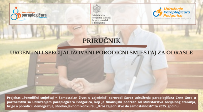 Flajer je izrađen u okviru projekta ,,Porodični smještaj = Samostalan život u zajednici” koji ima za cilj unapređenje usluga u zajednici i razvoj specijalizovanog i urgentnog porodičnog smještaja. Projekat sprovodi Savez udruženja paraplegičara Crne Gore, u partnerstvu sa Udruženjem paraplegičara Podgorica, uz finansijsku podršku Ministarstva socijalnog staranjabrige o porodici i demografije. Sadržaj flajera ima za cilj da informiše stručnu i širu javnost o značaju razvoja ove usluge, ulozi stručnih radnika u njenoj primjeni, kao i da promoviše porodični smještaj kao važnu alternativu institucionalnom zbrinjavanju. Istovremeno, ukazuje na potrebu jačanja kapaciteta…