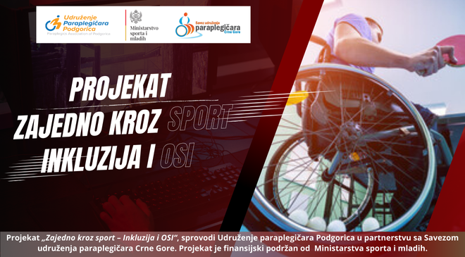Udruženje paraplegičara Podgorica u partnerstvu sa Savezom udruženja paraplegičara Crne Gore realizuje projekat „Zajedno kroz sport – Inkluzija i OSI“ koji je podržan od strane Ministarstva sporta i mladih po Konkursu u oblasti sporta za 2024. godinu. Cilj projekta je unapređenje položaja osoba sa invaliditetom kroz uključivanje u sportske aktivnosti, smanjenje diskriminacije i podizanje svijesti javnosti o važnosti inkluzije u sportu. Projekat se sprovodi na teritoriji svih crnogorskih opština, u trajanju od 10 mjeseci. Planirane aktivnosti obuhvataju: Projekat „Zajedno kroz sport – Inkluzija i OSI“ ima za cilj veću vidljivost…