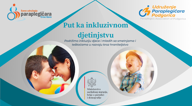Savez udruženja paraplegičara Crne Gore, u partnerstvu sa Udruženjem paraplegičara Podgorica, realizuje projekat „Put ka inkluzivnom djetinjstvu“, uz finansijsku podršku Ministarstva socijalnog staranja, brige o porodici i demografije. U okviru projekta, na više lokacija biće postavljeni bilbordi sa porukom:„Podržimo inkluziju djece i mladih sa smetnjama i teškoćama u razvoju kroz hraniteljstvo.“ Kroz ovu kampanju želi se: Na ovaj način šaljemo poruku da svako dijete zaslužuje da odrasta u okruženju koje pruža sigurnost, ljubav i jednake mogućnosti za razvoj.