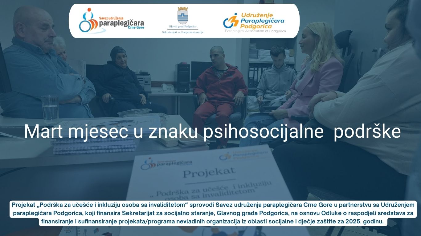 Radionice se sprovode u okviru projekta „Podrška za učešće i inkluziju osoba sa invaliditetom“, koji realizuje Savez udruženja paraplegičara Crne Gore u partnerstvu sa Udruženjem paraplegičara Podgorica, a projekat je finansiran od strane Sekretarijata za socijalno staranje Glavnog grada Podgorica.